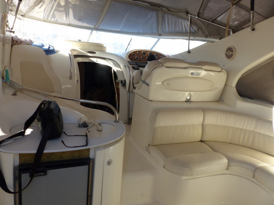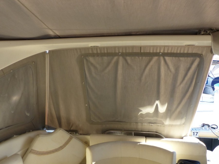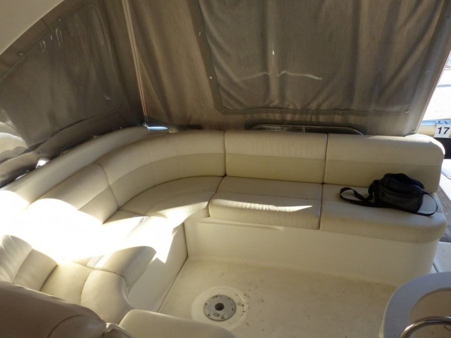 Beau cockpit avec table transformable en bain de soleil, bain de soleil avant, taud d'hivernage, taud de camping.