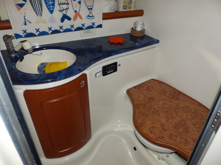 Gobbi 345 SC à vendre avec place de port, 2 cabines double, salle d'eau avec WC électrique, cuve eaux