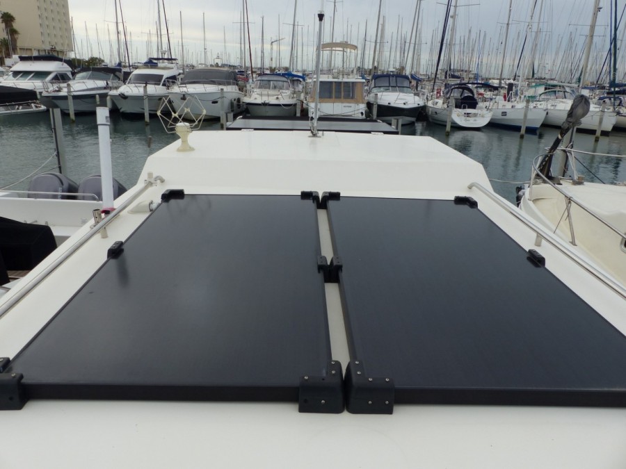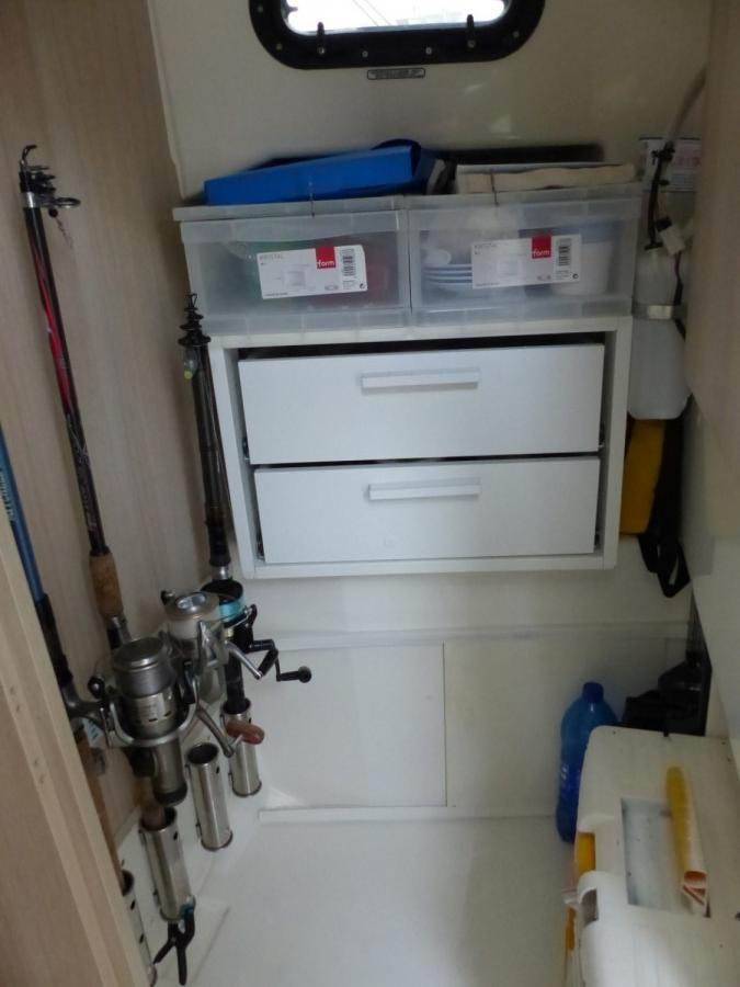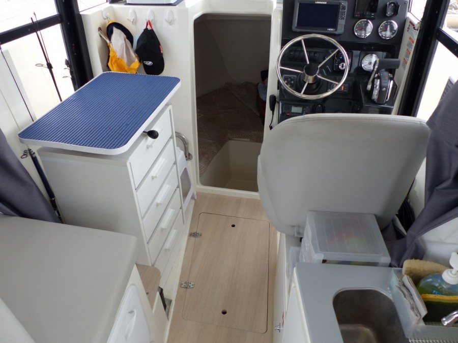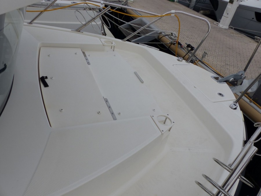 Cette unité est dans un état très proche du neuf, nombreuses options et modifications ont étés apportés, plusieurs placards de rangement, 3 panneaux solaire 170 w chacun, pompe d'eau, vivier, ancre électrique Minn kota 112 livres avec 3 batteries de 100 amp et chargeur dédié, guindeau électrique, 2 batteries moteur et service avec chargeur auto, propulseur d'étrave avec batterie 80 amp.