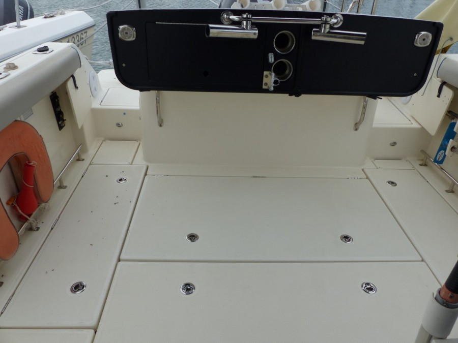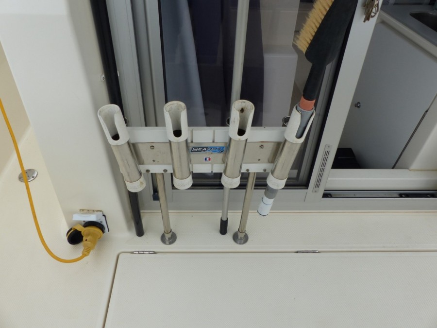 Flaps électrique géré automatiquement, trim Mercruiser également automatique, plusieurs porte cannes et prises 12 v dans le cockpit,