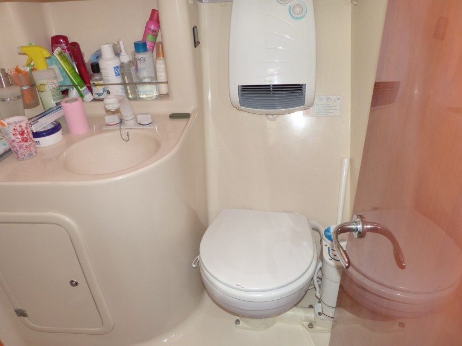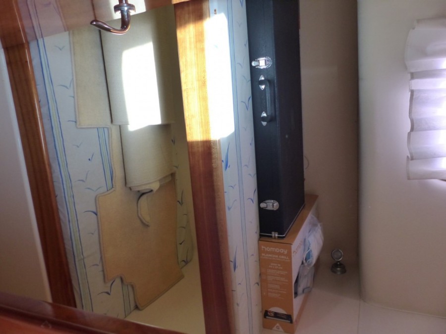 Una cabine propriétaire avant lit double standard et une cabine latérale à deux lites superposés, une salle d'eau av douche et WC electrique