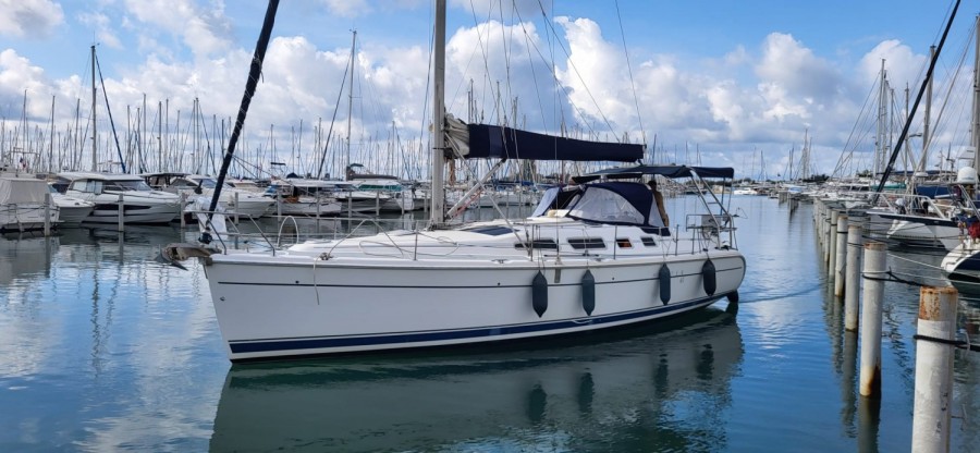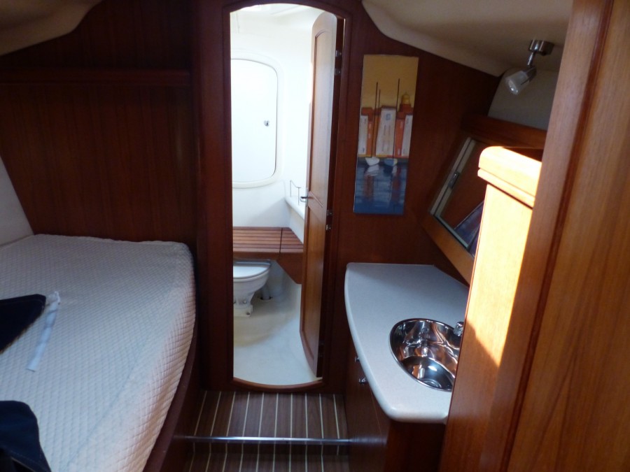 Hunter 41 de 2004 très belle boiserie intérieure , magnifique bateau de 12.40 de long mais 11.80 sur l'acte de francisation.petit tirant d'eau, quille à ailette, un winch électrique, 2 grandes cabines doubles plus carré transformable, propulseur d'étrave